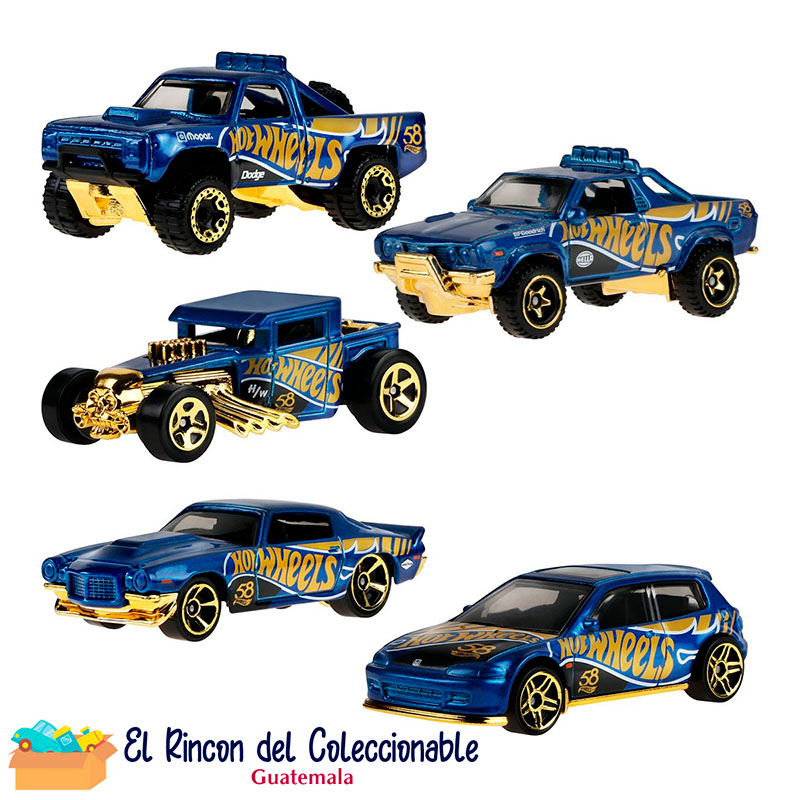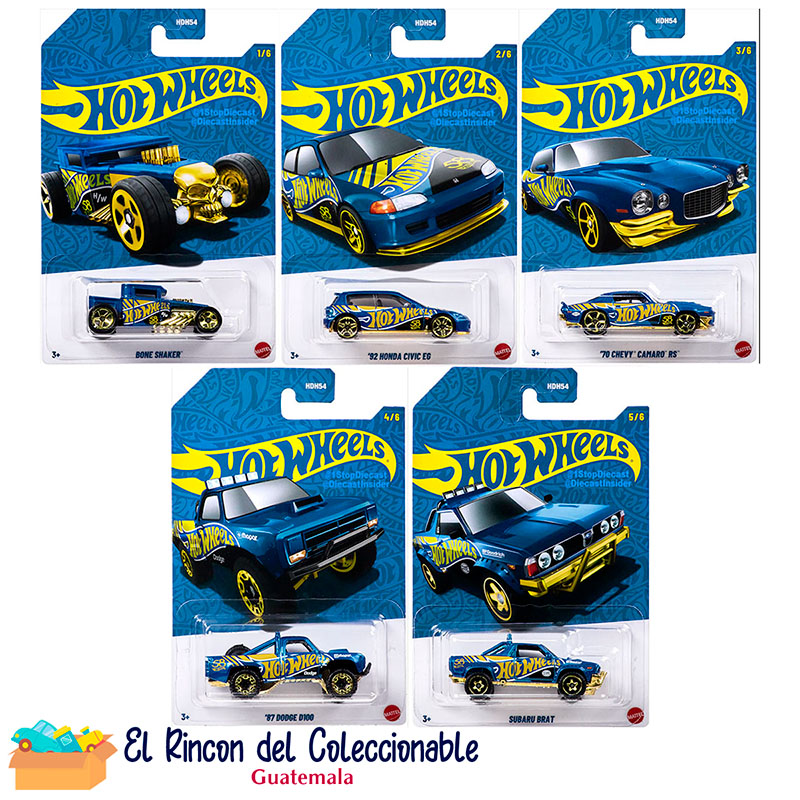 La colección incluye las siguientes piezas:– ’92 Honda Civic EG– ’70 Chevy Camaro RS– Bone Shaker– ’87 Dodge D100– Subaru Brat.