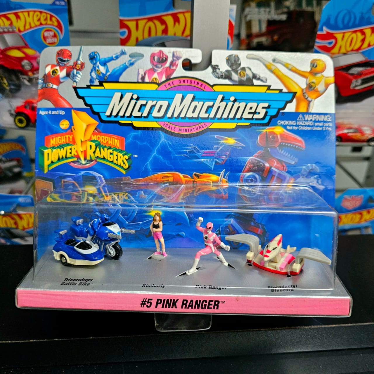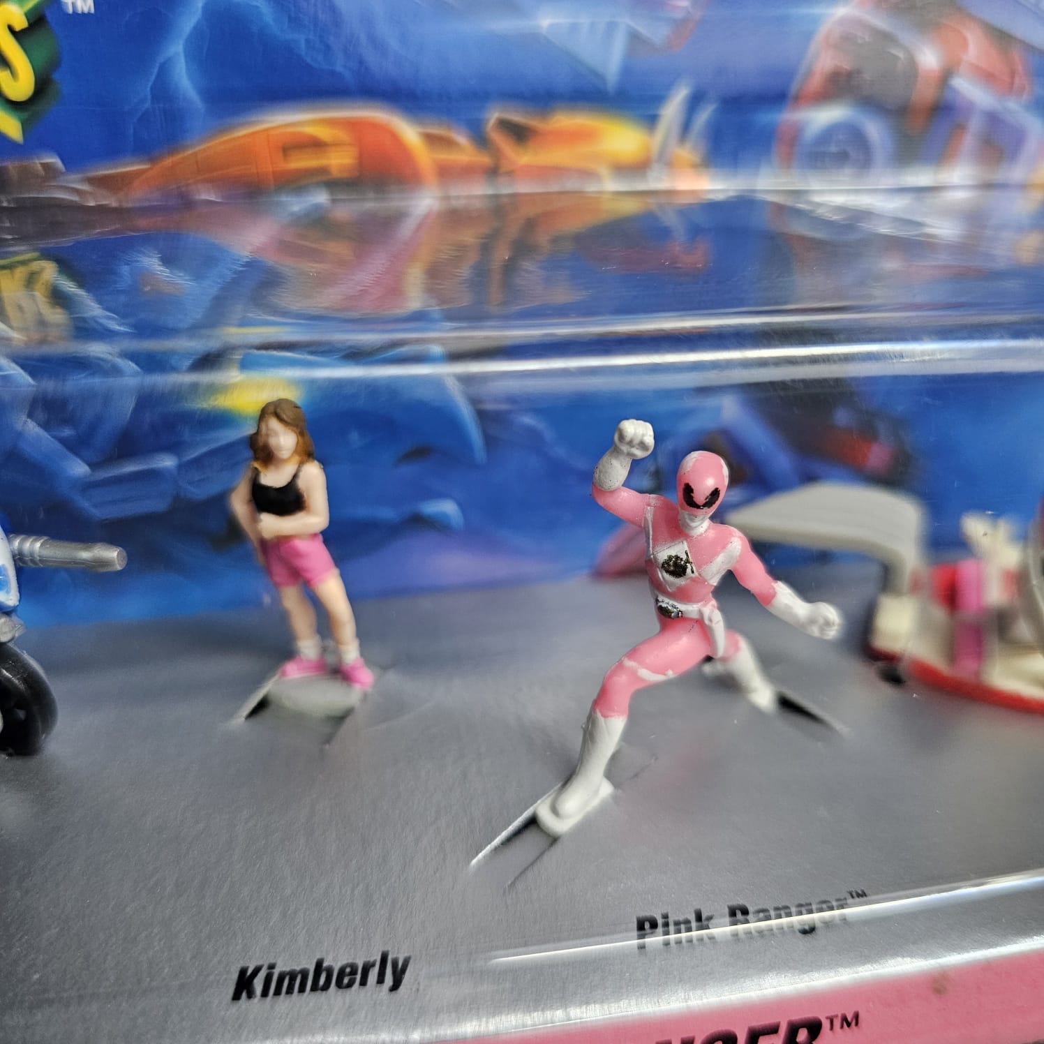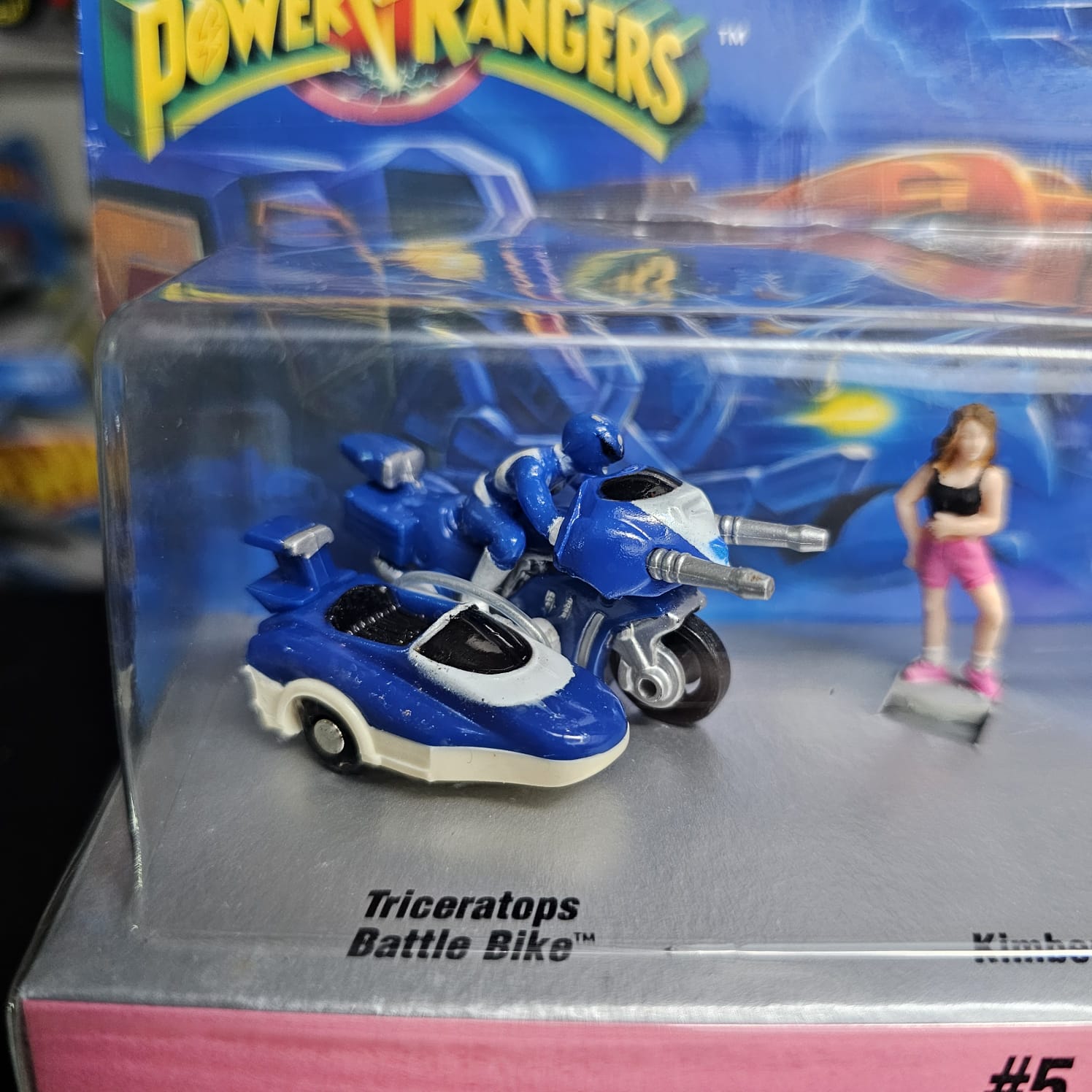 - El set incluye: Triceratops Battle Bike con piloto, Kimberly, Pink Ranger, Pterodactyl Dinozor